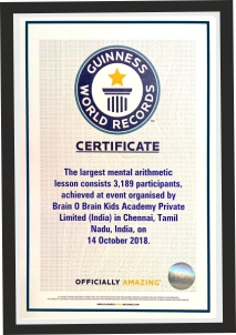 Brainobrain entered the Asia Book of Records for the most number of participants to attend the mental arithmetic session together. 3189 kids attended the session which was held at Chennai...