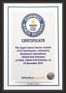 873 children of Brainobrain International from 12 different countries were trained in Abacus at a time in an attempt to break the previous Guinness record of 441 participants set by Canada...